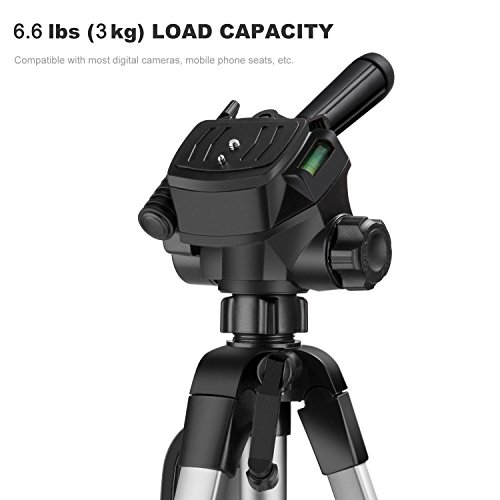 El trípode con 360 °de 3 vías panorámica cabeza,universal de 1/4 placa de liberación rápida,y nivel de burbuja,Capacidad de carga 6.6lbs/3kg.